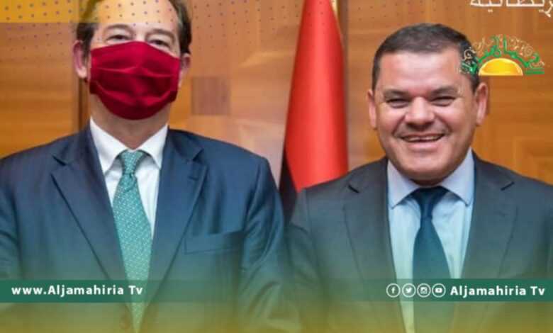 التقى رئيس الحكومة الانتقالية عبد الحميد الدبيبة اليوم الأحد، السفير البريطاني إلى ليبيا، نكيولاس هوبتون.