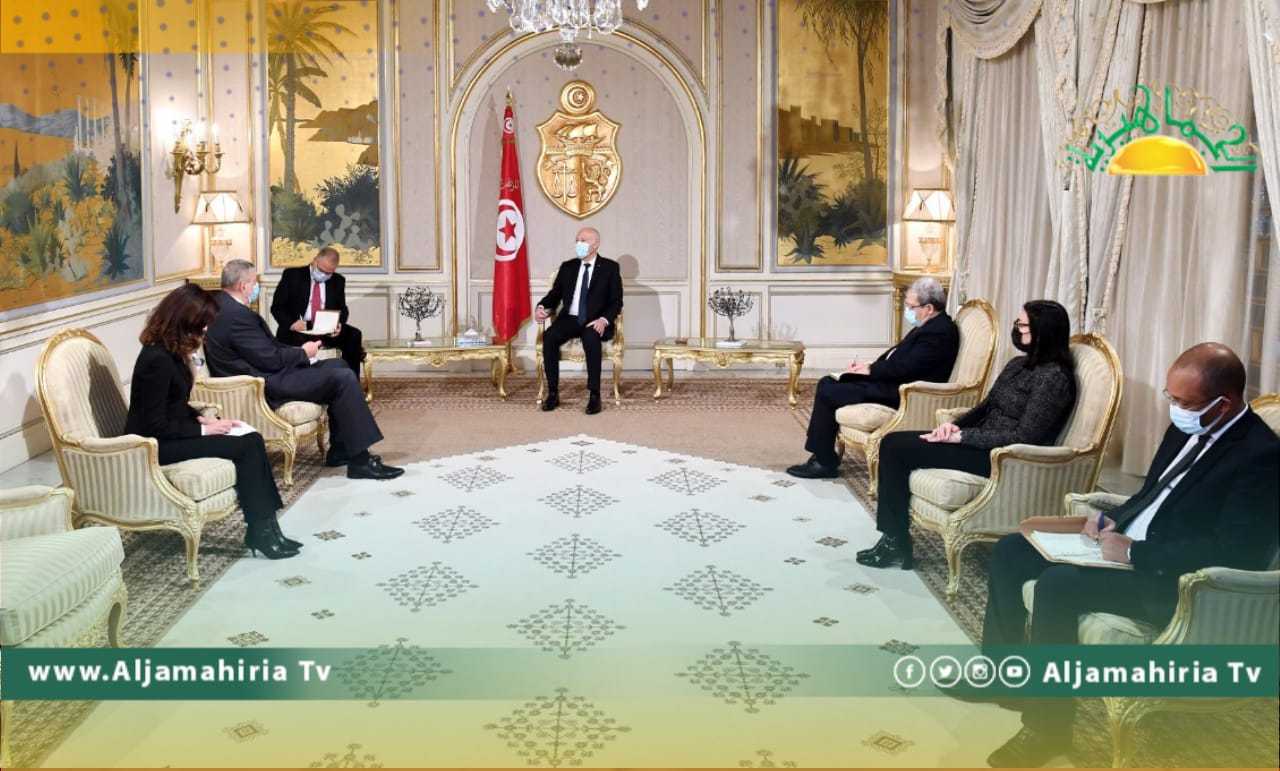 وشدد سعيد على أن في نجاح مهمة الأمم المتحدة في ليبيا نجاح لليبيا ولتونس ولكامل المنطقة، مشيرا إلى أن ليبيا مقبلة على مرحلة جديدة من تاريخها، على إثر الاتفاقات السياسية الأخيرة والشروع في مسار الانتقال من شرعية دولية مؤقتة إلى شرعية داخلية دائمة.