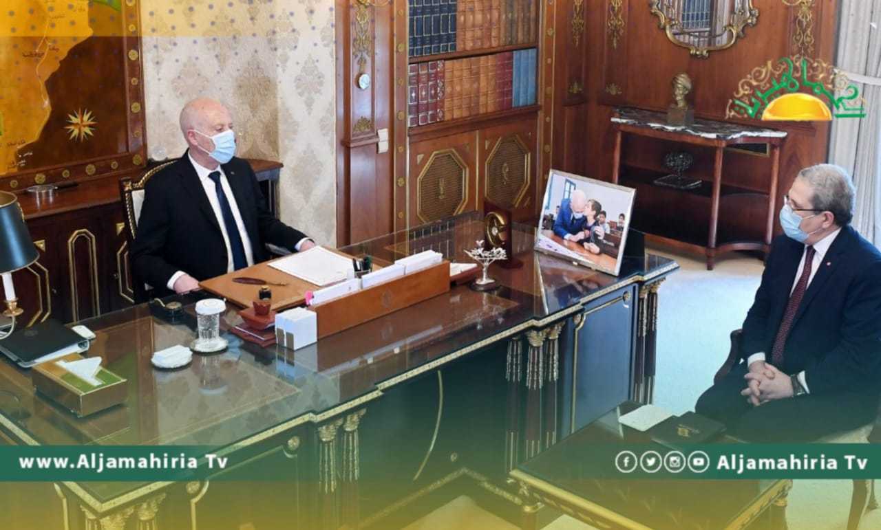 بحث الرئيس التونسي قيس سعيد، مع وزير الخارجية التونسي عثمان الجرندي، آليات استمرار وقوف تونس إلى جانب ليبيا.