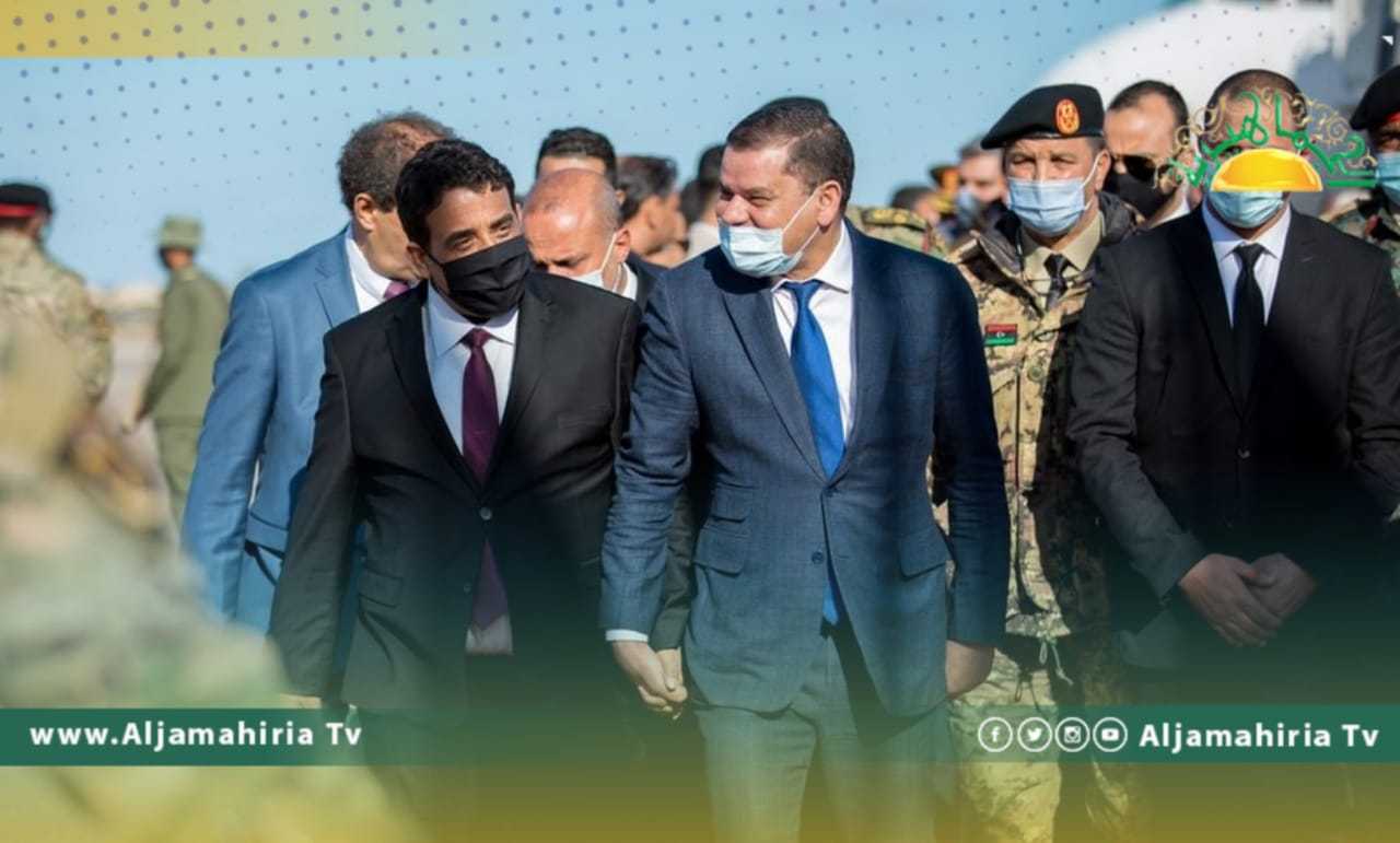 جاء ذلك على خلفية استقبال الدبيبة رفقة عضو المجلس الرئاسي الانتقالي عبدالله اللافي لرئيس المجلس الانتقالي محمد المنفي .
