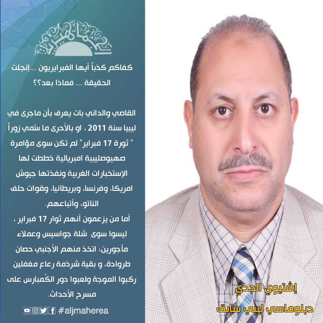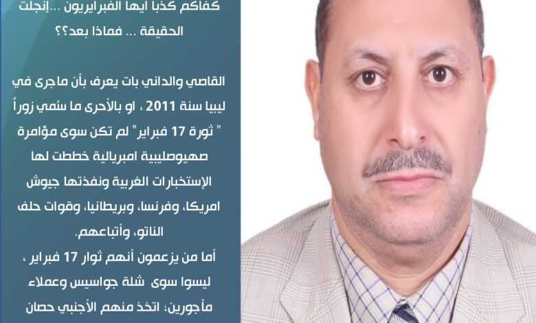 القاصي والداني بات يعرف بأن ماجرى في ليبيا سنة 2011 ، او بالأحرى ما سُمي زوراً ” ثورة 17 فبراير” لم تكن سوى مؤامرة صهيوصليبية امبريالية خططت لها اﻹستخبارات الغربية ونفذتها جيوش امريكا، وفرنسا، وبريطانيا، وقوات حلف الناتو، وأتباعهم.
