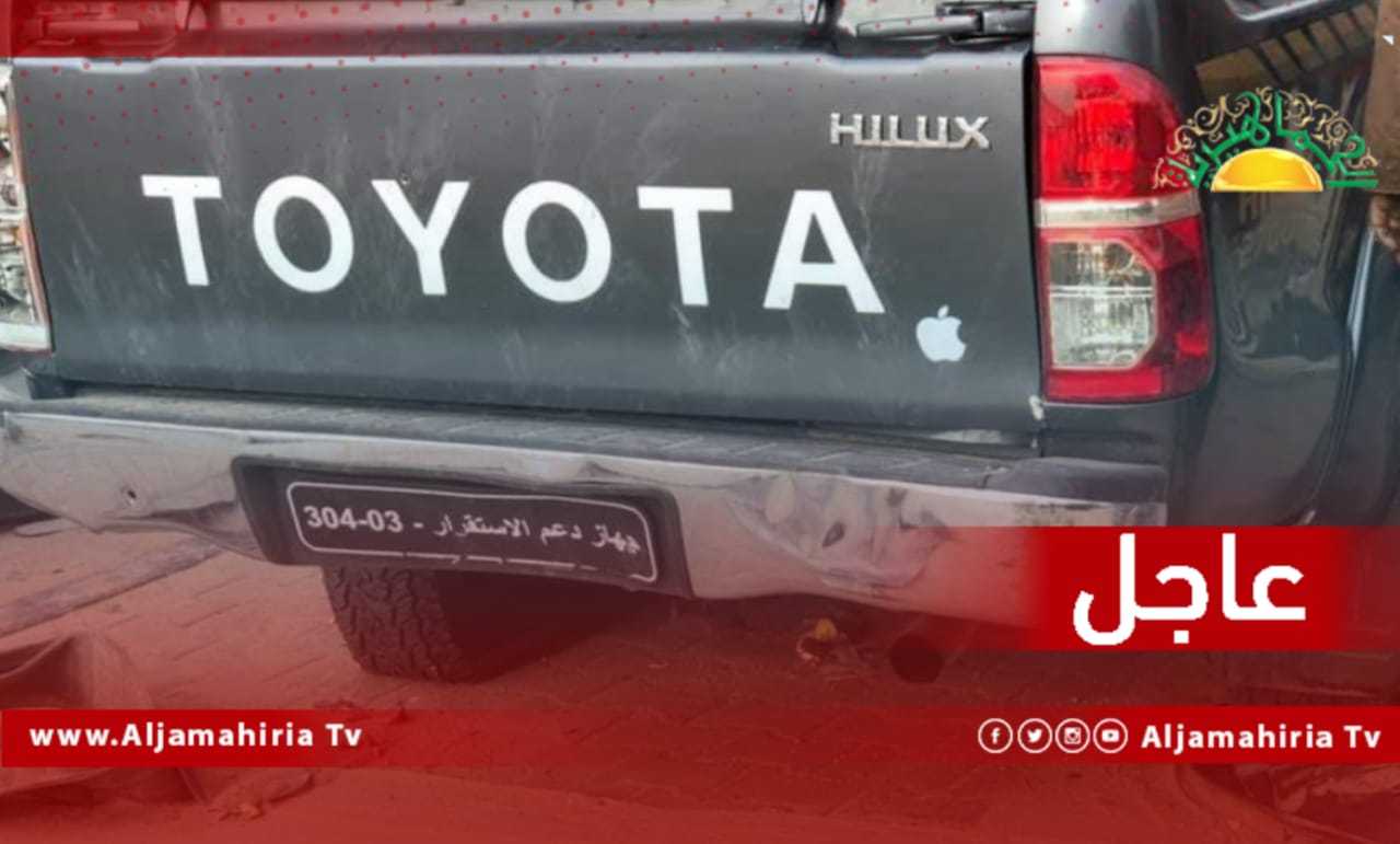 عاجل // القتيل في واقعة اشتباك رتل باشاغا كان يقود سيارة تحمل شعار جهاز دعم الإستقرار المستحدث من قبل السراج مؤخرا