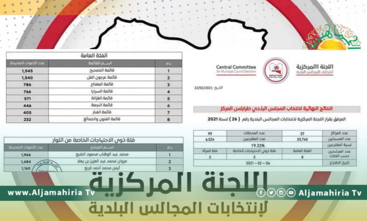 أعلنت اللجنة المركزية لانتخابات المجالس البلدية الإثنين، النتائج النهائية لانتخاب المجلس البلدي طرابلس المركز.