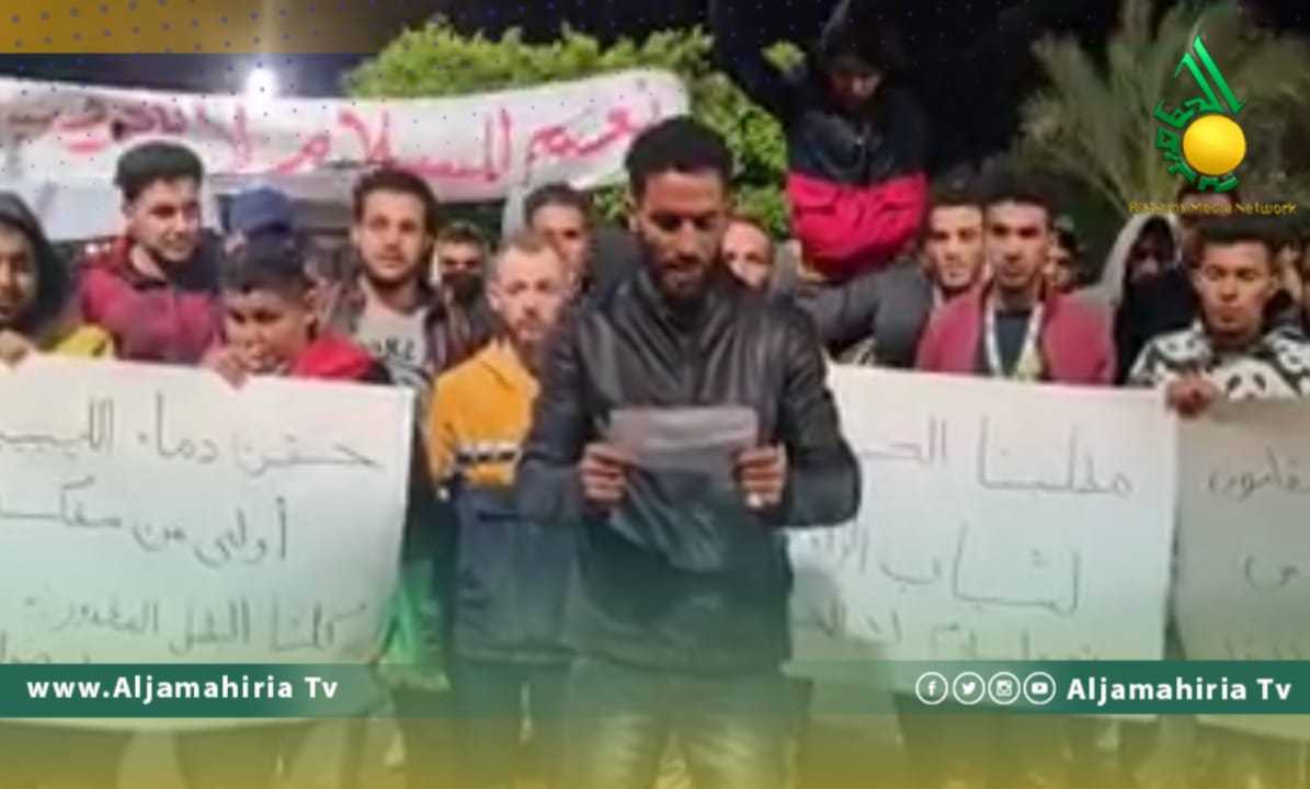 وقد رفع أهالي مدينة الزاوية، لافتات تؤكد على السلام ورفض الحرب، وأن حقن دماء الليبيين أولى من سفكها