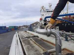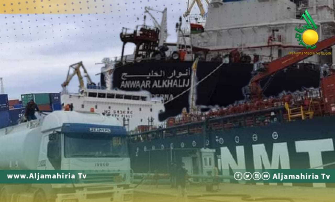وباشرت الناقلة انوار الخليج تفريغ حمولتها بعد مغادرة الناقلة أنوار النصر وغادرت الرصيف لتباشر الشركة توزيعه حتى يصل إلى مختلف محطات الوقود .