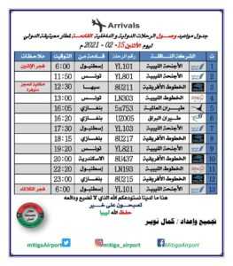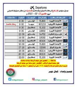 • مواعيد رحلات الطيران من وإلى مطار معيتيقة