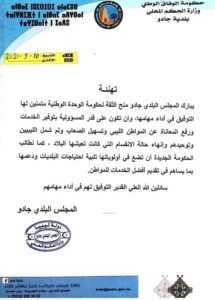 المجلس البلدي في جادو يُهنئ حكومة الدبيبة لحصولها على ثقة البرلمان