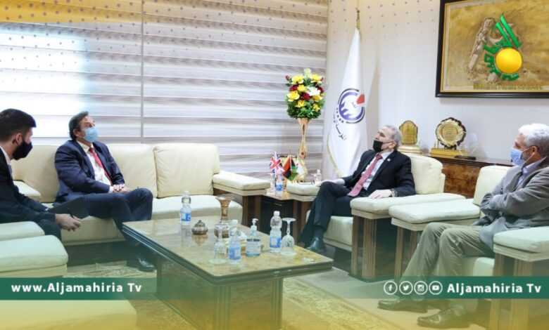 ناقش رئيس مؤسسة النفط مصطفى صنع الله، مع سفير المملكة المتحدة لدى ليبيا نيكولاس هوبتون، سبل تعزيز التعاون الاقتصادي بين المؤسسة والشركات البريطانية في مجال النفط والغاز ومتابعة وتعزيز التعاون في مجال النفط مع الشركات البريطانية في مختلف المجالات الاستفادة من خبراتها.