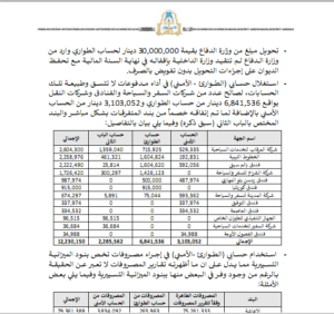 وأظهر التقرير الكاشف لـ”بئر الفساد” في داخلية السراج، حوالة بمبلغ 30 مليون دينار دخلت لحساب الداخلية من وزارة الدفاع، لم يتضح سببها ولا الغرض منها ليبلغ ما تحصلت عليه الوزارة من خارج الميزانية 407 مليون دينار، إلى جانب أن الوزارة سلمت سيارات لجهات وأشخاص خارج القطاع مما يعد تصرفًا في المال العام بالمجان وأغلب عقودها تفتقد الإجراءات القانونية السليمة.
