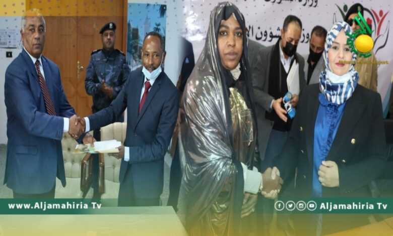 وسلمت وزيرة الشؤون الاجتماعية بحكومة الوحدة المؤقتة، وفاء أبوبكر محمد الكيلاني شهادات الشكر والتقدير للجهات التابعة والفروع وموظفي ديوان الوزارة على جهودهم وتفانيهم في العمل طيلة الفترة الماضية، فيما قدم مسؤولو الوزارة باقة ورد للوزيرة متمنين لها التوفيق والنجاح في مهمتها الجديدة.