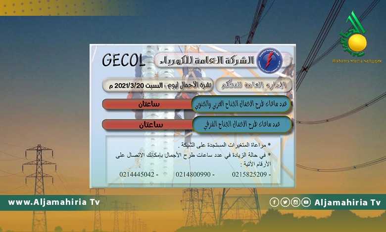 تصل عدد ساعات طرح الأحمال اليوم السبت إلى ساعتين في مختلف المناطق في ليبيا.