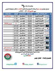• مواعيد رحلات الطيران من وإلى مطار معيتيقة