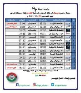• مواعيد رحلات الطيران من وإلى مطار معيتيقة