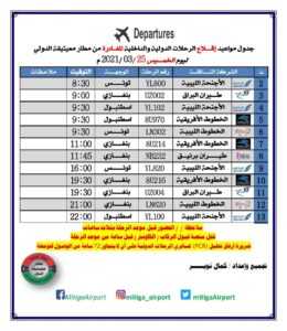 مواعيد رحلات الطيران من وإلى مطاري معيتيقة وبنينا اليوم