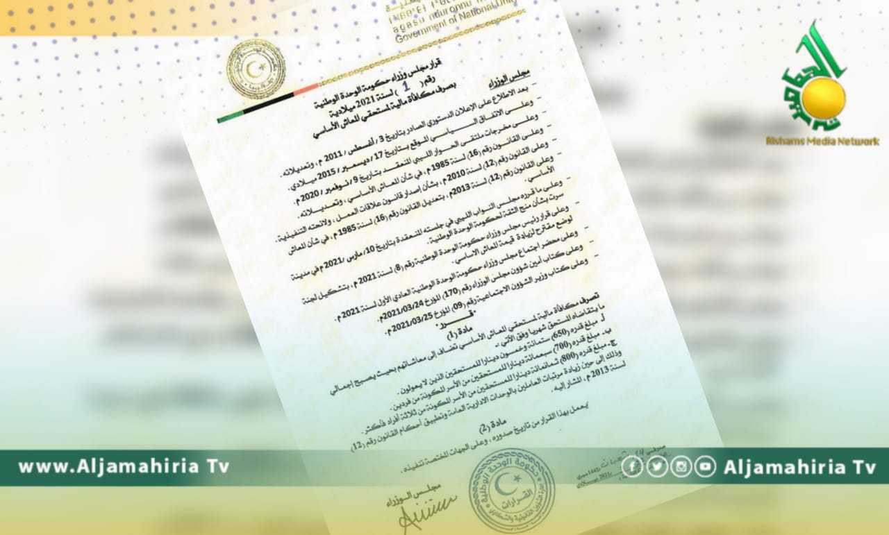 يذكر ان رئيس حكومة الوحدة الموقتة قد اصدر قرارا بتشكيل لجنة لوضع مقترح رفع قيمة المعاشات الأساسية بما يكفل تحقيق العدالة في منظومة مرتبات القطاع العام برئاسة وزير الاقتصاد.