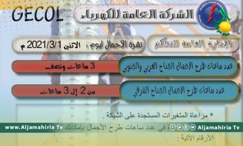 ودعت الشركة العامة إلى تقديم شكاوى في حال زيادة عدد ساعات طرح الأحمال عن المدة المقررة، بالاتصال بالأرقام : 0215825209 / 0214808922 / 0214800990