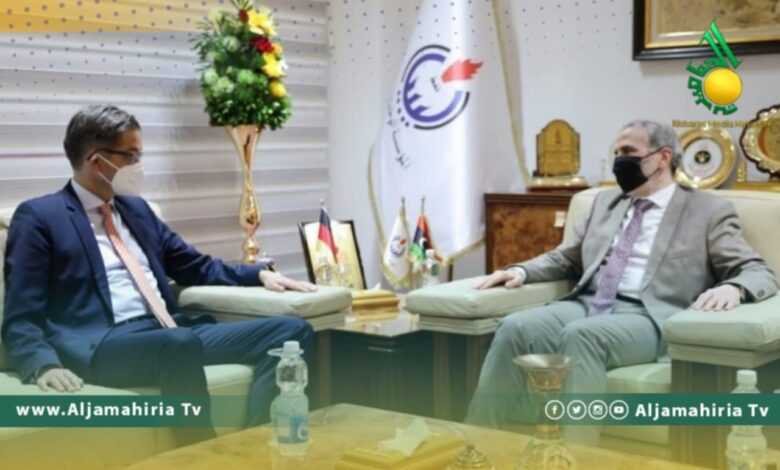 صنع الله يناقش مع السفير الألماني لدى ليبيا أوليفر أوفتشا سبل التعاون المشترك بين مؤسسة النفط والشركات الألمانية