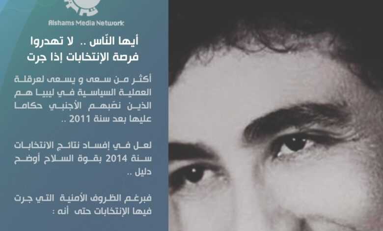 و لذلك كل من يرى في الإنتخابات خياراً لا يُثمر عليه أن يدرك أنّ ذلك ما يتمناه و يعمل عليه الذين يسيطرون الآن و يتحكمون في ليبيا و الليبيين ..