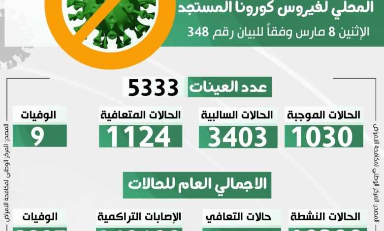 التحديث اليومي للوضع الوبائي لفيروس كورونا ليوم الإثنين 8 مارس 2021