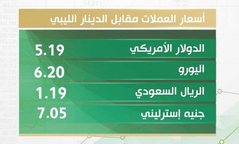 أسعار العملات الأجنبية مقابل الدينار الليبي اليوم الثلاثاء