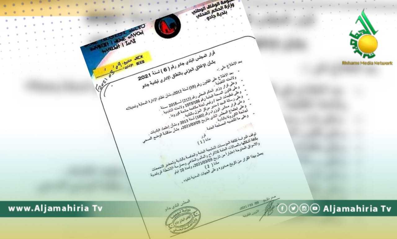 المجلس البلدي جادو يصدر قرارا بالاغلاق الجزئي في المدينة لمدة عشرة ايام