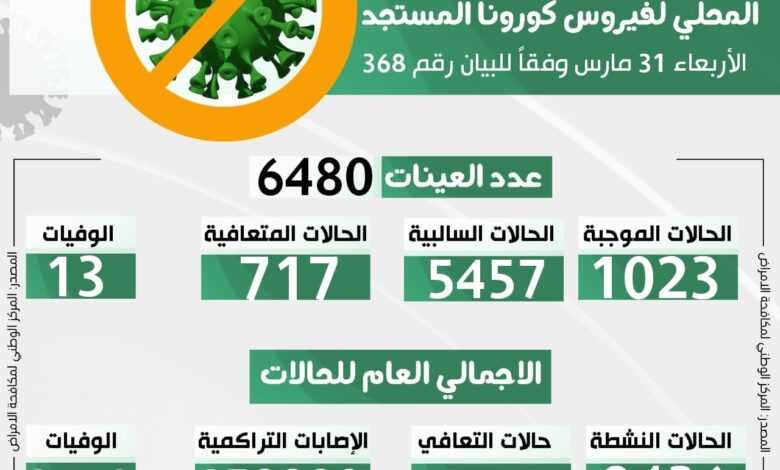 – عدد (1023) عينة موجبة ( 827 جديدة + 196 مخالطة )
