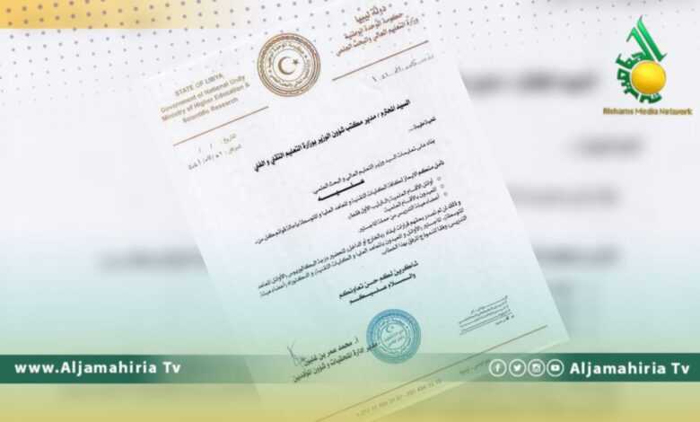 وقالت في خطاب وجهته بهذا الشأن ان ذلك يخص من لم تصدر بحقهم قرارات ايفاد بالخارج او الداخل لتحضير درجة البكالوريوس ” اوائل المعاهد المتوسطة .. والماجستير ” الاوائل والمعيدون بالمعاند العليا والكليات التقنية.. اضافة الى الدكتوراه ” اعضاء هيئة التدريس “.