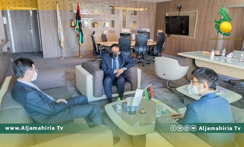ناقش رئيس مجلس إدارة القابضة للاتصالات فيصل قرقاب مع السفير الصيني لدى ليبيا تشيمين وانغ سبل التعاون المشترك لتطوير قطاع الاتصالات والتقنية في ليبيا