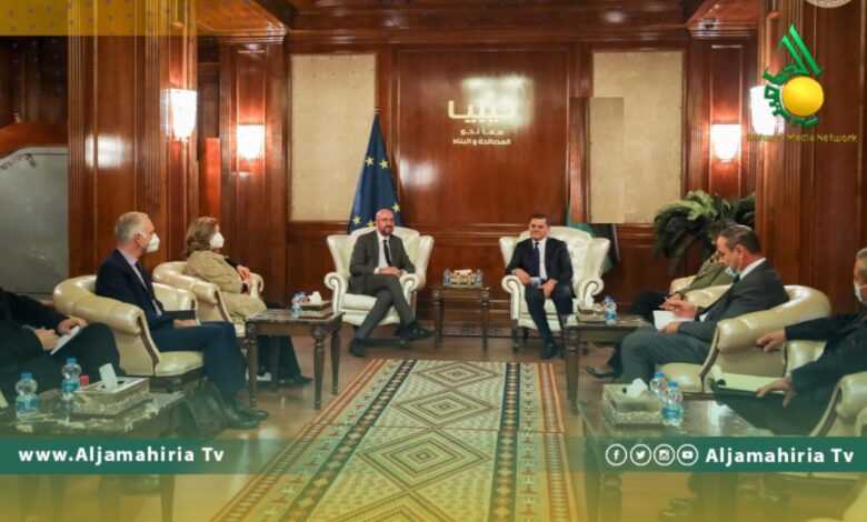 جاء ذلك خلال لقاء جمعه اليوم الأحد مع رئيس الحكومة الانتقالية “عبد الحميد الدبيبة”، وأكد ميشيل على أن جميع دول الإتحاد الأوروبي تتحدث بصوت موحد فيما يتعلق بدعم السلطات الليبية في جميع الملفات بما فيها ملفات التنمية والهجرة والأمن والانتخابات.