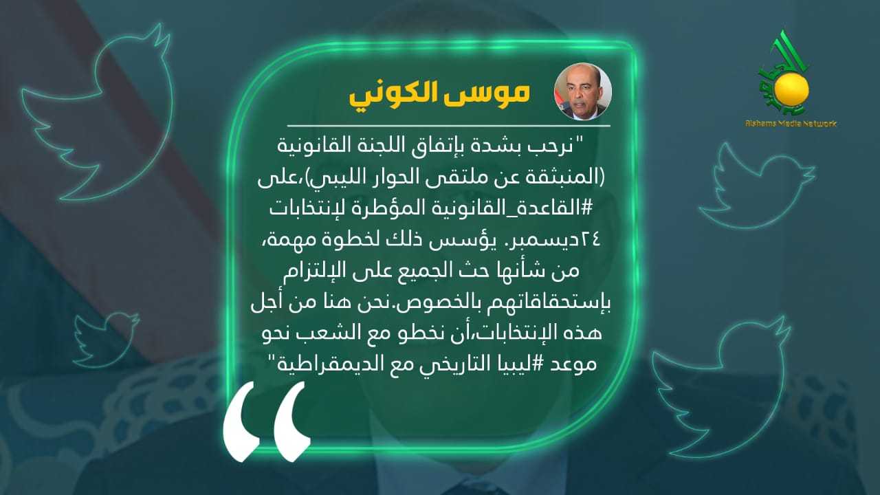 نرحب بشدة بإتفاق اللجنة القانونية (المنبثقة عن ملتقى الحوار الليبي)،على #القاعدة_القانونية المؤطرة لإنتخابات ٢٤ديسمبر. يؤسس ذلك لخطوة مهمة، من شأنها حث الجميع على الإلتزام بإستحقاقاتهم بالخصوص.نحن هنا من أجل هذه الإنتخابات،أن نخطو مع الشعب نحو موعد #ليبيا التاريخي مع الديمقراطية. pic.twitter.com/6kZ41Tc1Ig