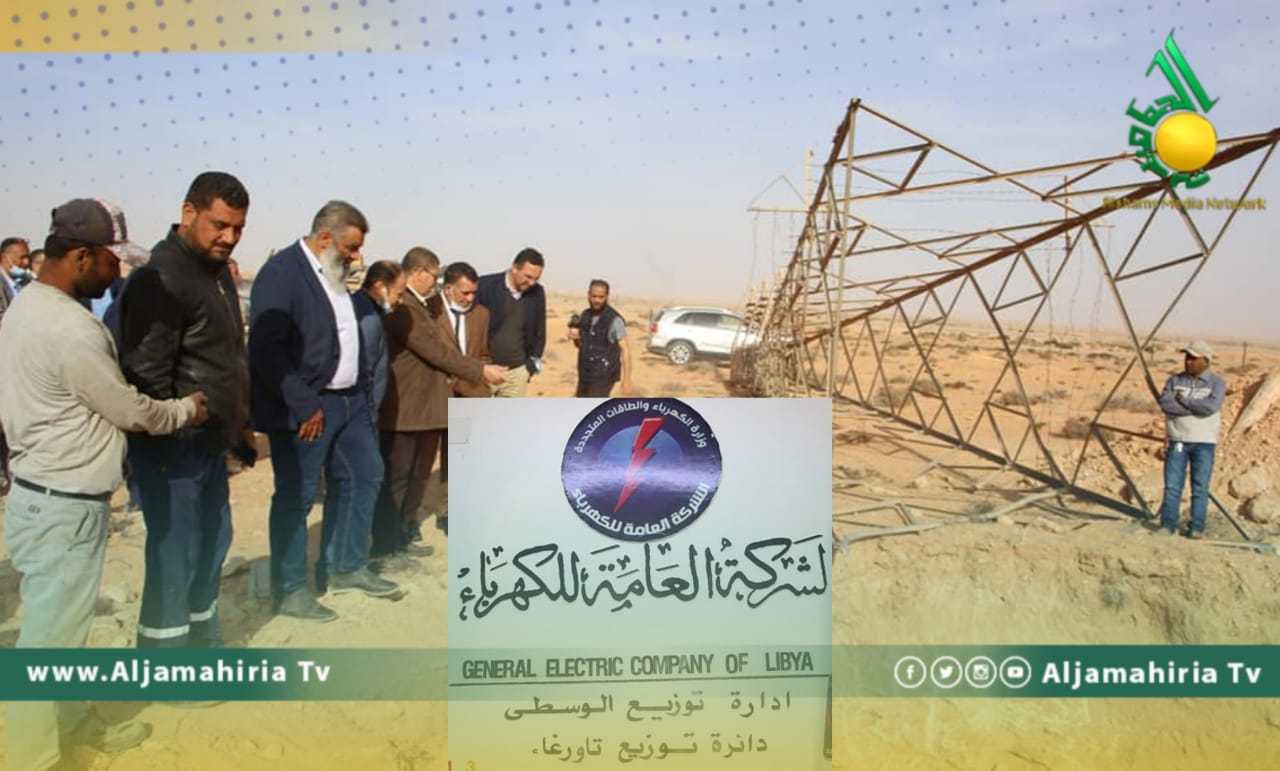 وقال بيان للشركة، على صفحتها الرسمية على “فيس بوك”، إنه تم تنفيذ خط خشبي 30ك ف بشكل عاجل لتغذية تاورغاء بالتيار الكهربائي، إلى حين صيانة أبراج الضغط العالي المنهارة.