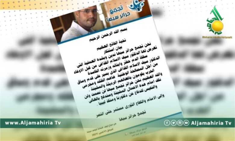 واستنكرت في بيان، مايحاك من قبل القتلة ومجرمى الحرب ومحاولاتهم الدنيئة والمشينة ضد الدكتور سيف الإسلام القذافى الذى يسير على طريق المصالحة الوطنية للم شمل ليبيا.