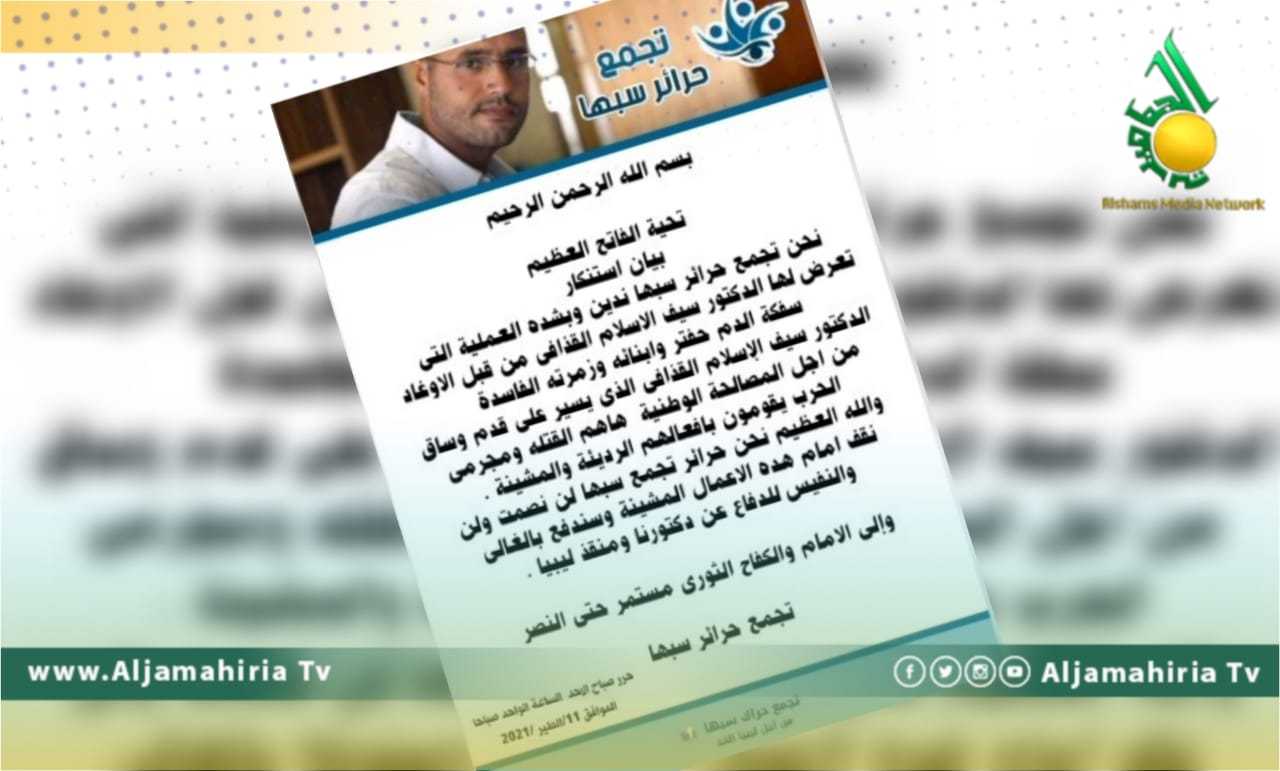 “تجمع حرائر سبها” يدين المحاولة الخسيسة التى تعرض لها الدكتور سيف الإسلام القذافي