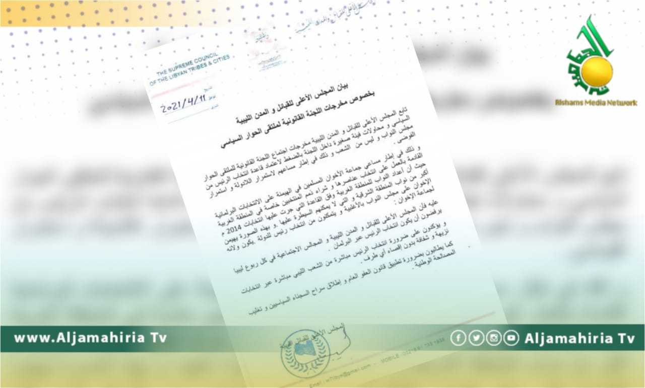 وأشار المجلس إلى متابعته مخرجات اجتماع اللجنة القانونية لملتقى الحوار السياسي والمحاولات من فئة صغيرة داخل اللجنة الضغط لاعتماد قاعدة انتخاب الرئيس من مجلس النواب وليس من الشعب، وذلك في إطار مساعيهم لاستمرار اللا دولة واستمرار الفوضى.