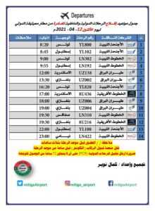 مواعيد رحلات الطيران من وإلى مطاري معيتيقة وبنينا الإثنين