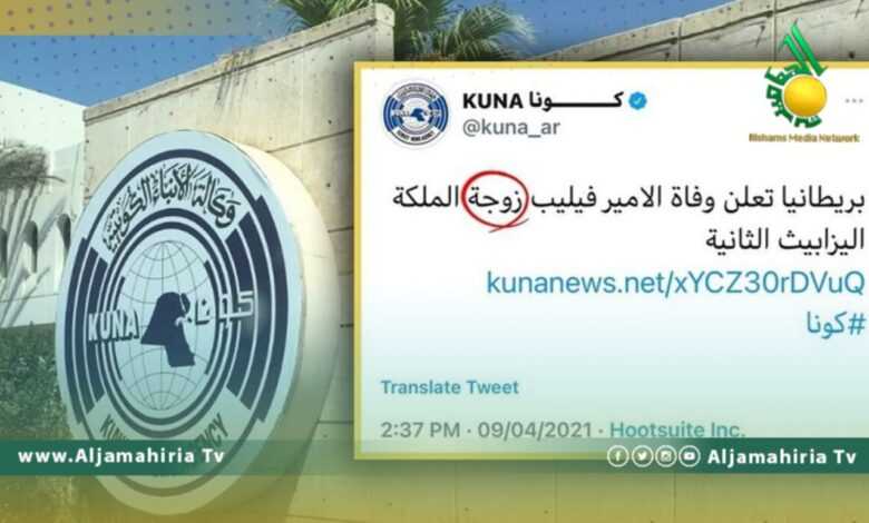 أعلنت وكالة الأنباء الكويتية “كونا” أنها أحالت المتسببين بخطأ لغوي ورد في خبر الإعلان عن وفاة الأمير فيليب زوج إليزابيث ملكة بريطانيا، الذي نشرته الوكالة، إلى التحقيق.