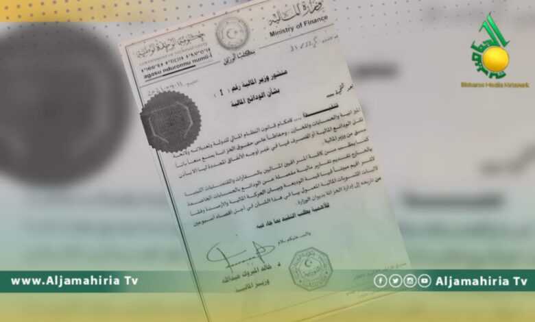 ودعا المبروك، في بيان نشرته المالية على الصفحة الرسمية، طالعته “الجماهيرية”، إلى تحديد قيمة الوديعة وبيان الحركة المالية والأرصدة وفقًا لآليات التسويات المالية المعمول بها في هذا الشأن، في أجل أقصاه أسبوعين من تاريخه إلى إدارة الخزانة بديوان الوزارة.