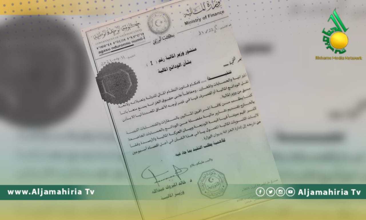 وشدد المبروك، على منع نقل الودائع المالية أو التصرف فيها منعا باتا وفي غير أوجه الإنفاق المحددة لها، إلا بإذن مُسبق من وزير المالية.