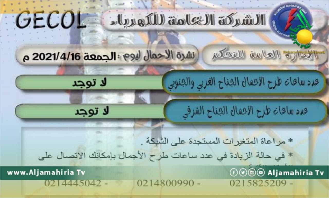 أنه لا يوجد طرح أحمال خلال ساعات اليوم، واستقرار الشبكة الكهربائية في كامل ربوع البلاد.