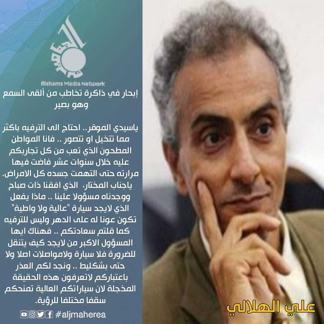 ياجناب المختار الذي افقنا ذات صباح ووجدناه مسؤولا علينا .. ماذا يفعل الذي لايجد سيارة “عالية ولا واطية” تكون عونا له على الدهر وليس للترفيه كما قلتم سعادتكم .. فهناك ايها المسؤول الاكبر من لايجد كيف يتنقل للضرورة فلاسيارة ولامواصلات اصلا ولا حتى بشكليط .. ونجد لكم العذر باعتباركم لاتعرفون هذه الحقيقة المخجلة لان سياراتكم العالية تمنحكم سقفا مختلفا للرؤية .