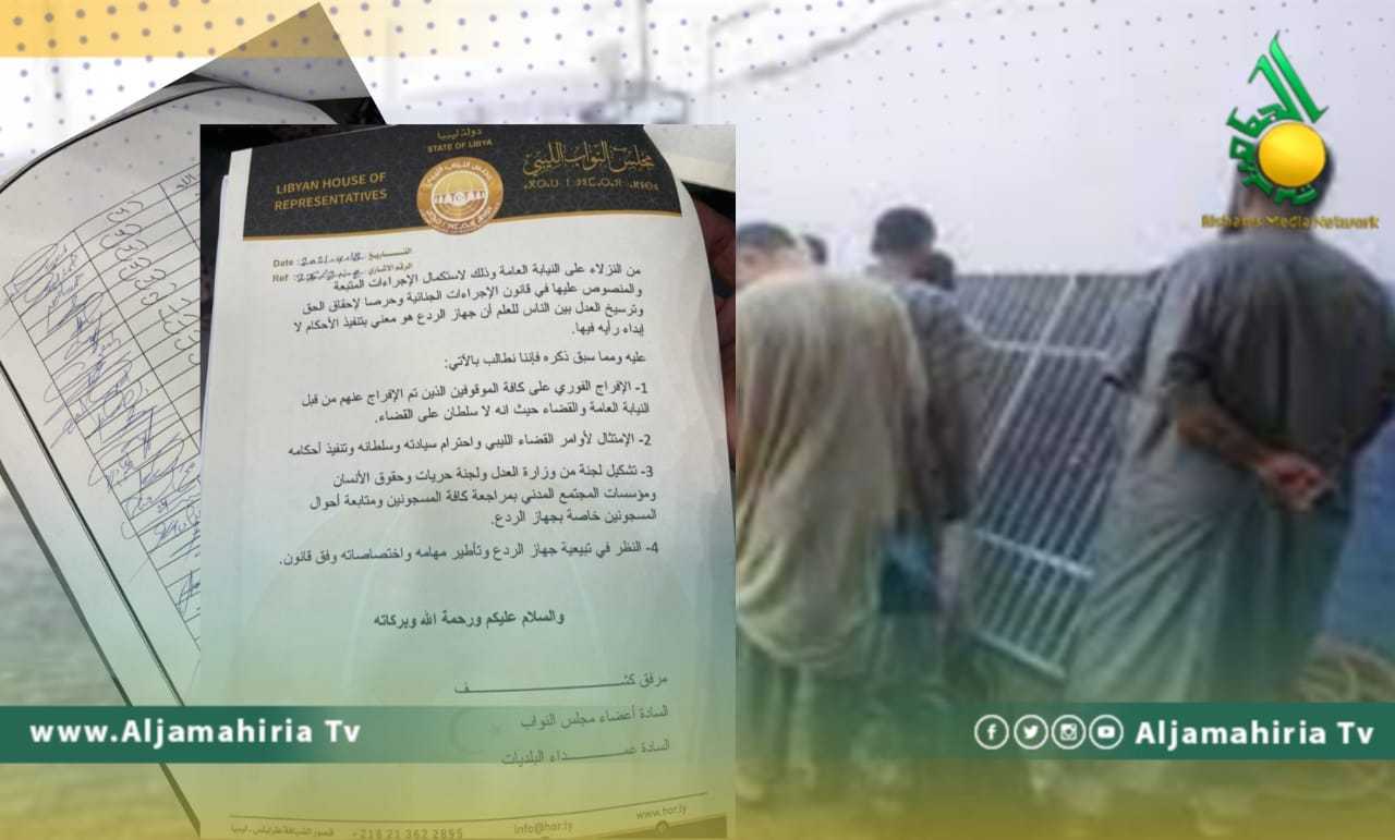 وطالب النواب في مذكرتهم، التي نقلتها الساعة 24، بالامتثال لأوامر القضاء الليبي، واحترام سيادته وسلطانه وتنفيذ أحكامه، وتشكيل لجنة من وزارة العدل ولجنة حريات وحقوق الإنسان ومؤسسات المجتمع المدني لمراجعة كافة المسجونين ومتابعة أحوال المسجونين خاصة بجهاز الردع.