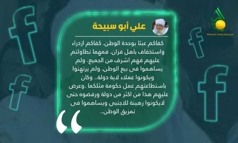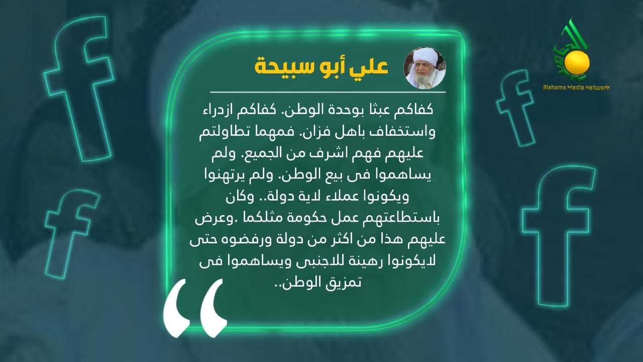 وقال أبو سبيحة في تدوينة له على صفحته على فيسبوك: نتيجة الحرب المعلنة والخفية على الجنوب، توصلك الى مرحلة الكفر بوحدة الوطن، حربا من الغرب علينا بقطع امداد الوقود وانقطاع الكهرباء والاظلام التام، وسد الطرق الرئيسية، وانعدام السيولة، والاهمال التام فى الخدمات.