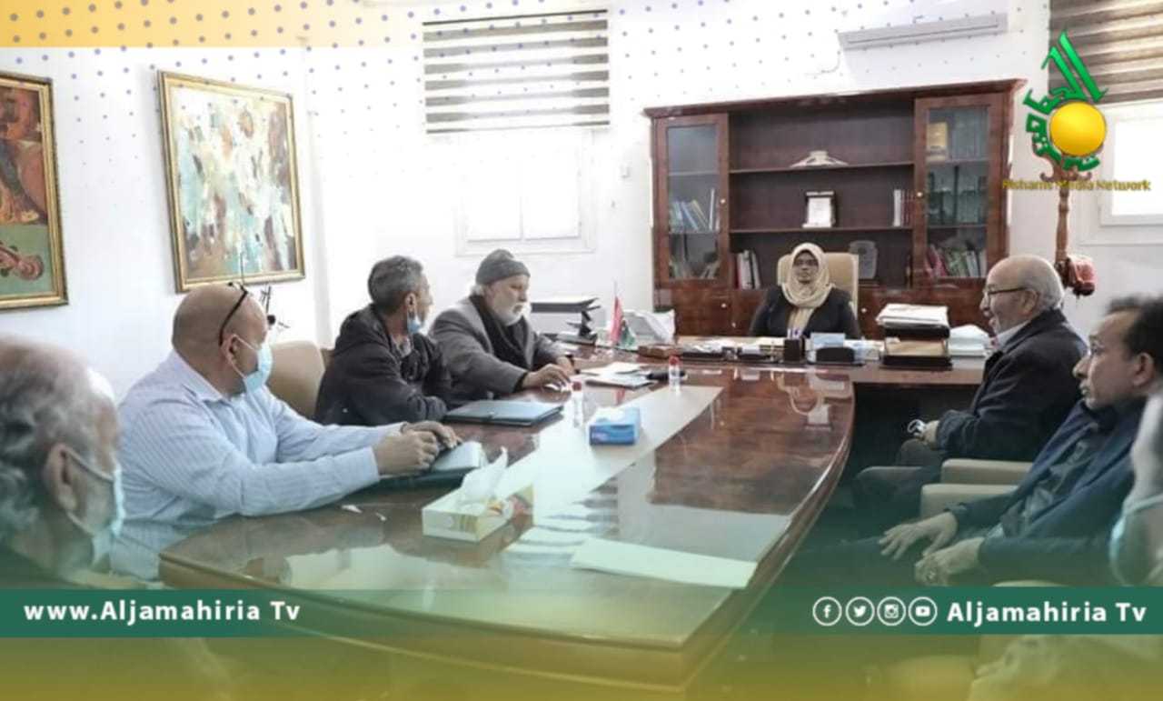 ناقشت وزيرة الثقافة والتنمية المعرفية مبروكة توغي عثمان مع نخبة من الفنانين والمخرجين السينمائيين والمسرحيين بديوان الوزارة، اليوم الأحد، بعض الأمور الفنية والثقافية على الساحة الليبية وآفاق التعاون مع الوزارة في هذا الشأن.