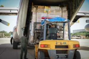 صور// وصول شحنة مساعدات طبية من مصر إلى مطار بنينا