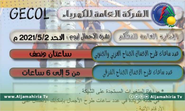 وقالت الشركة في بيان لها، إن عدد ساعات طرح الأحمال في الجناح الغرب والجنوبي، سيصل إلى ساعتين ونصف بينما سيمتد ما بين 5-6 ساعات في المنطقة الشرقية.