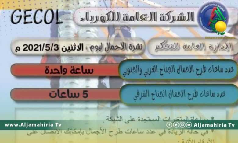 وقالت الشركة في بيان لها، إن عدد ساعات طرح الأحمال في الجناح الغرب والجنوبي، سيصل إلى ساعة، بينما سيمتد إلى 5 ساعات في المنطقة الشرقية.