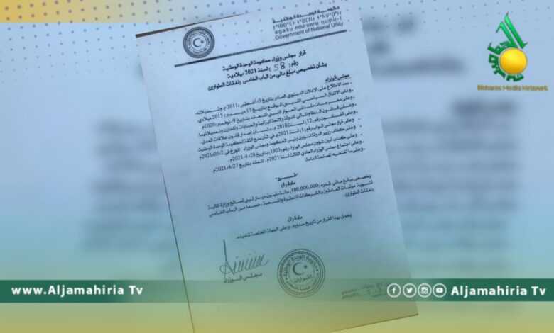 خصص مجلس الوزراء مبلغ مالي قدره 100000000 مائة مليون دينار ليبي لصالح لتسوية مرتبات العاملين بالشركات المتعثرة والمنسحبة، خصما من الباب الخامس (نفقات الطوارئ).