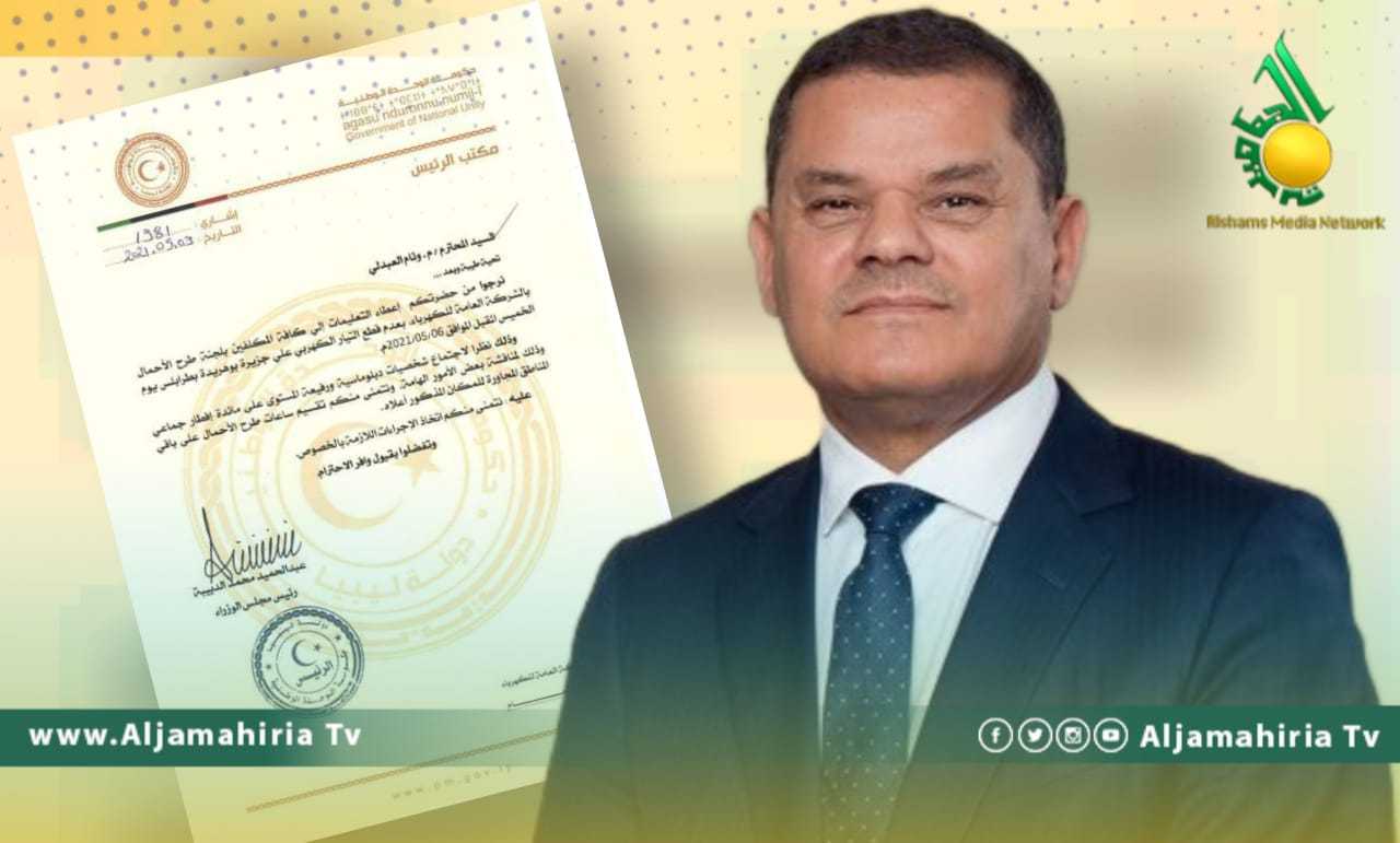 وجّه رئيس حكومة الوحدة المؤقتة كتاباً لرئيس الشركة العامة للكهرباء وئام العبدلي، طالبه فيه بعدم قطع التيار الكهربائي على جزيرة بوهريدة يوم الخميس المقبل، وتقسيم ساعات طرح الأحمال على المناطق المجاورة.