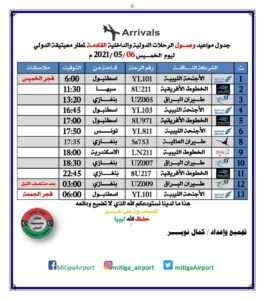 إليكم مواعيد رحلات الطيران من وإلى مطاري معيتيقة وبنينا اليوم