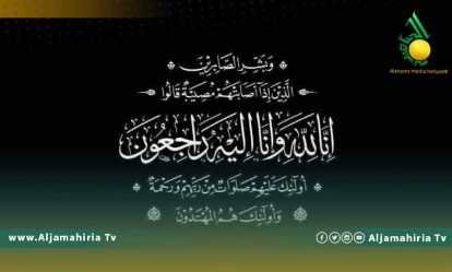 تتقدم قناة الجماهيرية العظمى بخالص التعازي في وفاة المغفور لها بإذن الله أخت اللواء الوفي المُهجر عمر عبدالله الراقوبي في وفاةشقيقته فاطمة، سائلين المولى عز وجل لها الرحمة والمغفرة ولأسرتها الصابرة السلوان.